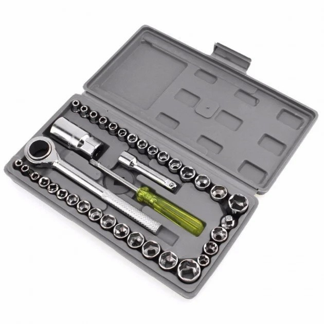Набір інструментів 40 в 1 — це універсальний набір інструментів, який розроблений спеціально для проведення різних ремонтних робіт автомобіля. До нього входять головки, тріскачки та насадки, що дають змогу проводити операції навіть у важкодоступних місцях.