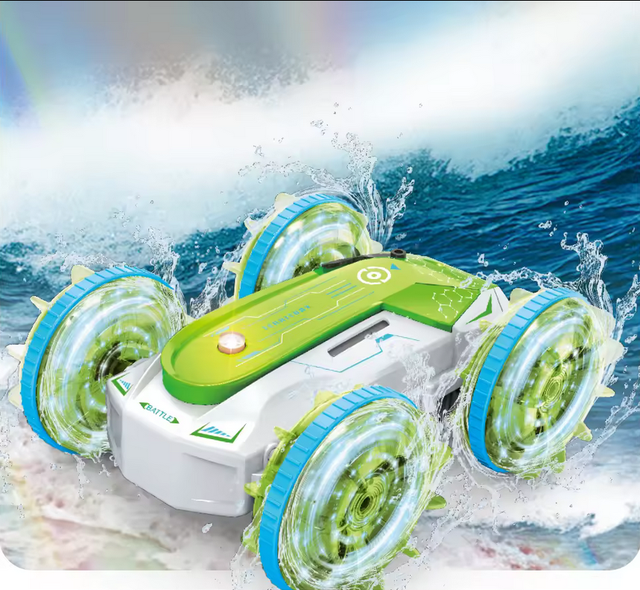 Підкоряйте будь-які поверхні на суші та воді з радіокерованою машинкою амфібією Amphibious Stunt Car! Сучасний футуристичний дизайн радіокерованої машинки-всюдиходу не залишить байдужим. Цей захопливий і багатофункціональний всюдихід має унікальні здібності, які дадуть змогу відчути неймовірні відчуття, а підсвітка коліс яскраво підсвічуватиме перегонову трасу. Радіокерована машинка може виконувати потужні 360-градусні обертання, перевороти та інші захопливі трюки на суші та у воді. Зручністю є можливість також керувати машинкою під час її перевороту на дах. Завдяки своїй універсальності та технічним характеристикам ця машинка стане незамінним супутником для активного відпочинку та пригод на свіжому повітрі. Реалізується у фірмовій коробці, завдяки чому буде чудовим подарунком.