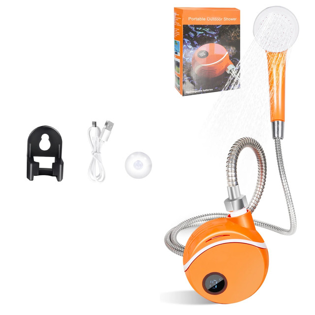 Похідний переносний душ з акумулятором і зарядкою від USB — незамінна річ на дачі, у подорожі, на кемпінгу, для поливання рослин. Для організації душової системи вам потрібна лише місткість із водою, у яку ви опустите насос.