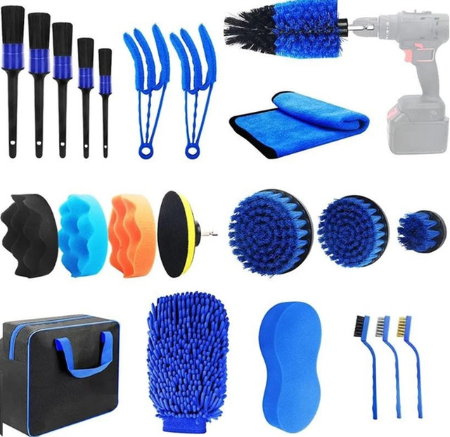 Набір для догляду за автомобілем — це універсальний комплект з 22 предметів, який дає змогу легко та якісно чистити як салон, так і зовнішню частину автомобіля. Завдяки великій кількості щіток, насадок і аксесуарів, ви зможете видалити бруд навіть із найбільш важкодоступних місць: вентиляційні отвори, колісні арки, панелі приладів, моторний відсік тощо.
